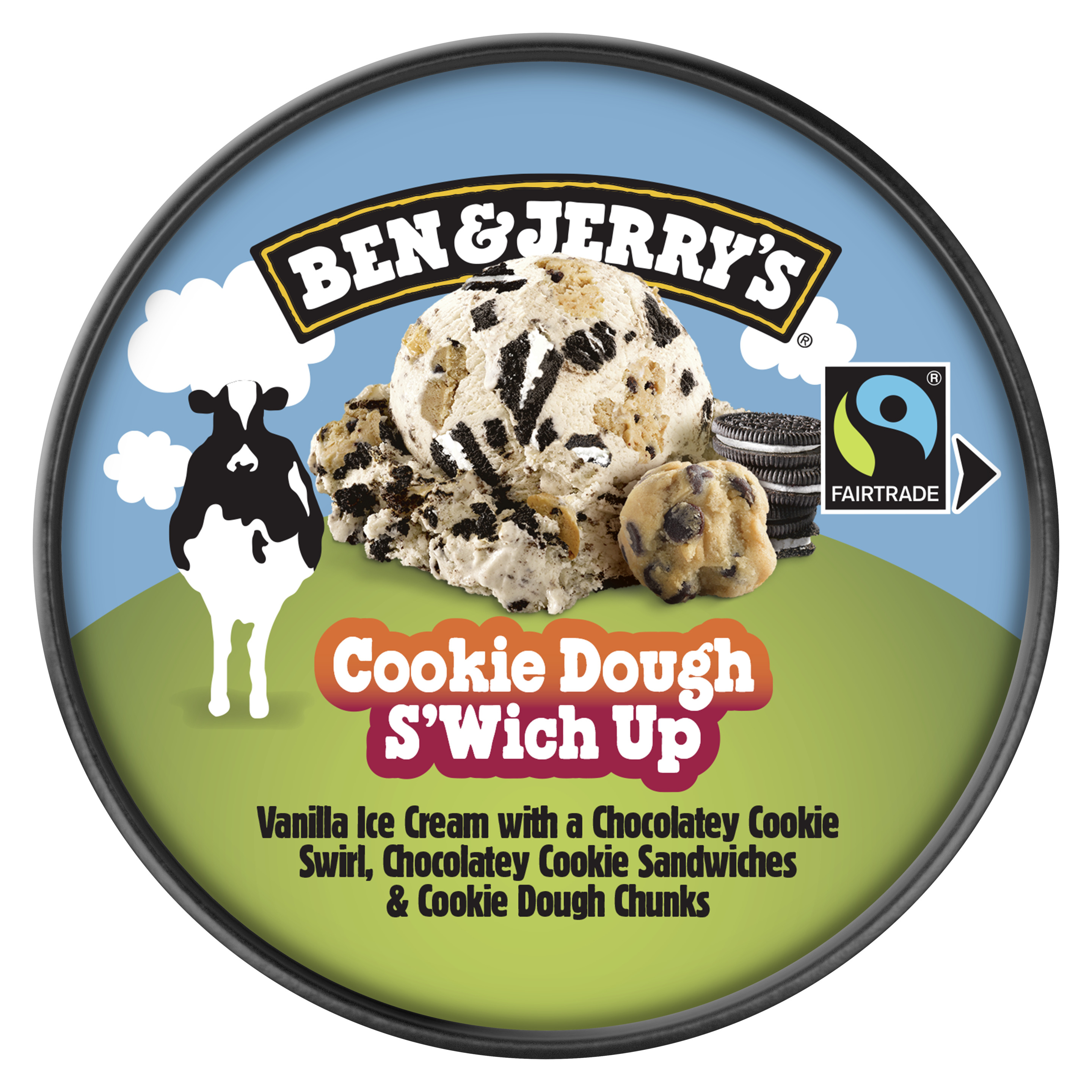 Es dauerte fünf Jahre, bis unser legendäres Cookie Dough Eis perfektioniert war. 25 Jahre später fragten wir uns, wie wir Cookie Dough noch keksiger machen könnten. Also schalteten wir den Cookie-o-Meter an, um folgendes auszuhecken: Vanilleeis mit Kakao-Cookie-Sandwiches, einem kakaohaltigen Keksstrudel und natürlich Cookieteig-Stücken All das steckt im neuen Cookie Dough S’Wich Up. Wir finden, es ist Cookie-Sandwich-tastisch… und hoffen, du siehst das genauso Cookies & Ice Cream... good together, any ’Wich way.