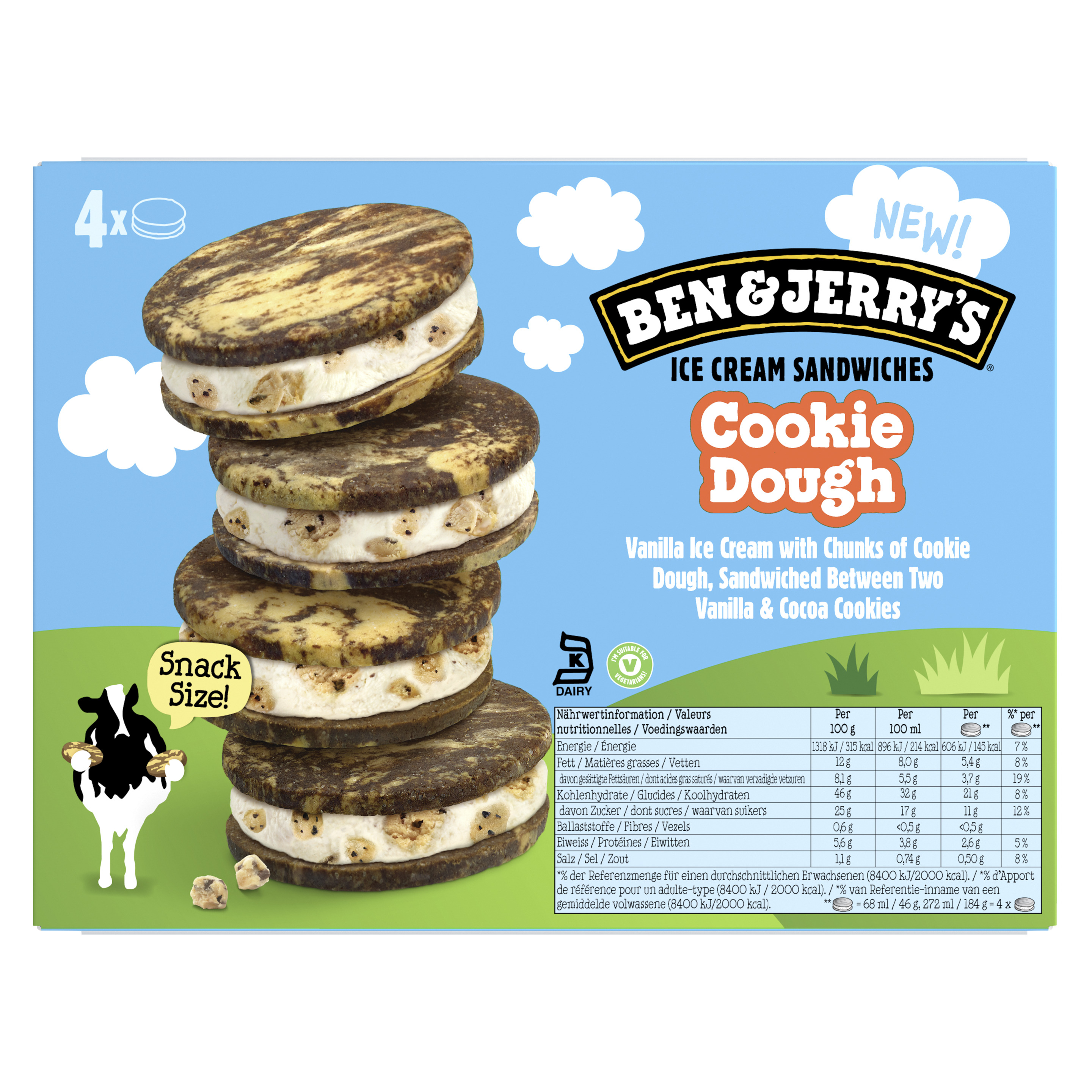 Produktinformationen "Ben & Jerry's Cookie Dough Ice Cream Sandwich Multipack 4x 68ml"