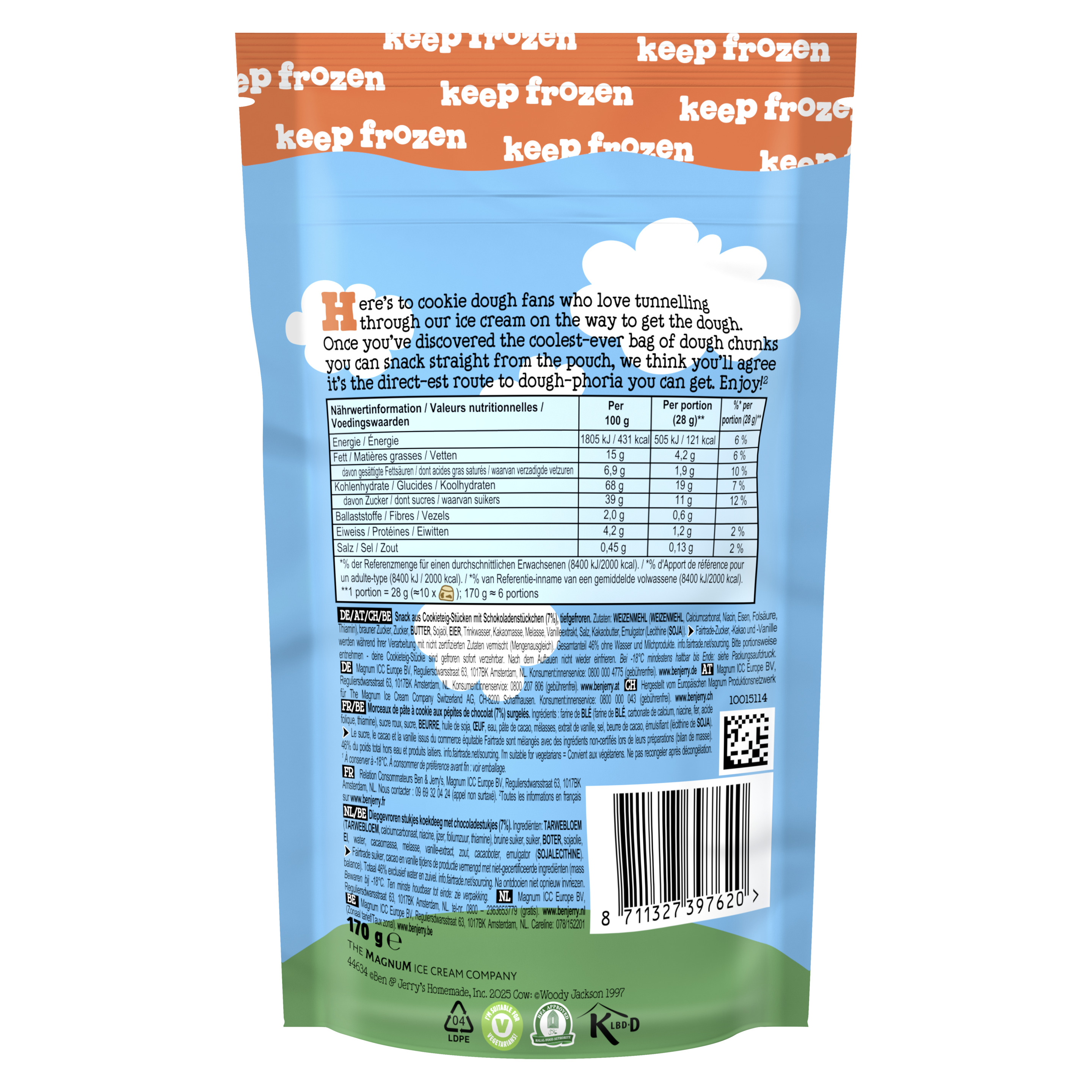 Produktinformationen "Ben & Jerry's Snackable Chocolate Chip Cookie Dough Chunks 170 g"