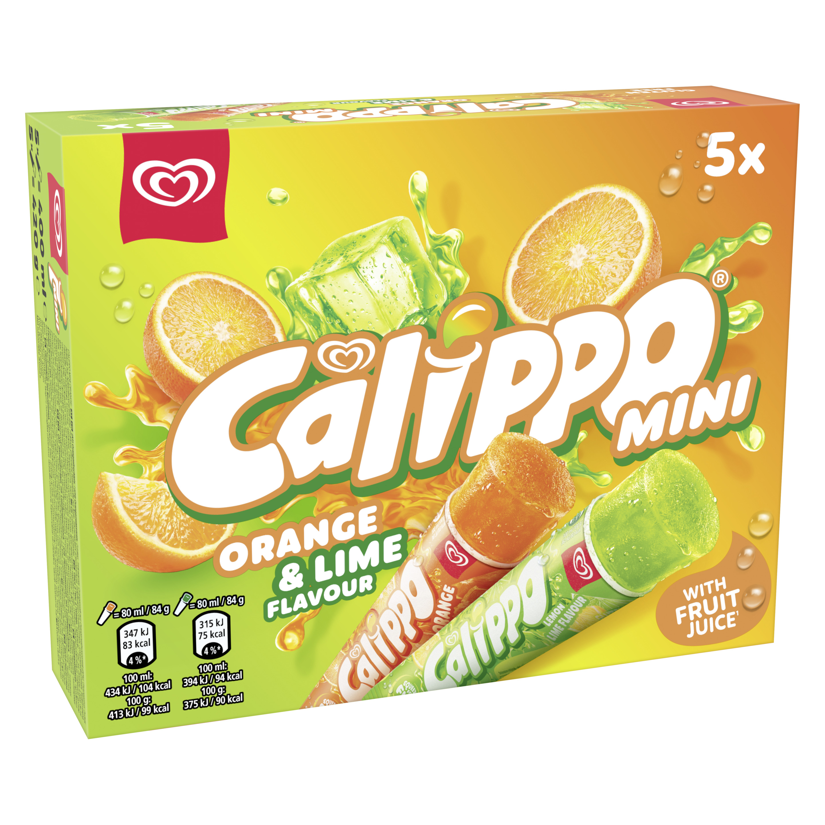 Zutaten: #Calippo Mini - Lemon-Lime Zutaten: Trinkwasser, Zitronensaft aus Zitronensaftkonzentrat (10%), Glukosesirup, Zucker, Fruktose, pflanzliche Ballaststoffe aus Mais, Stabilisatoren (Tarakernmehl, Johannisbrotkernmehl), Säureregulator (Citronensäure), Farbstoffe (Kurkumin, Kupferkomplexe der Chlorophylline), Aroma. Kann Milch enthalten. #Calippo Mini - Orange Zutaten: Trinkwasser, Orangensaft aus Orangensaftkonzentrat (20%), Glukosesirup, Zucker, Apfelsaft aus Apfelsaftkonzentrat (6%), Fruktose, pflanzliche Ballaststoffe aus Mais, Säureregulator (Citronensäure), Stabilisatoren (Tarakernmehl, Johannisbrotkernmehl), Farbstoffe (Paprikaextrakt, Kurkumin), Aroma. Kann Milch enthalten.