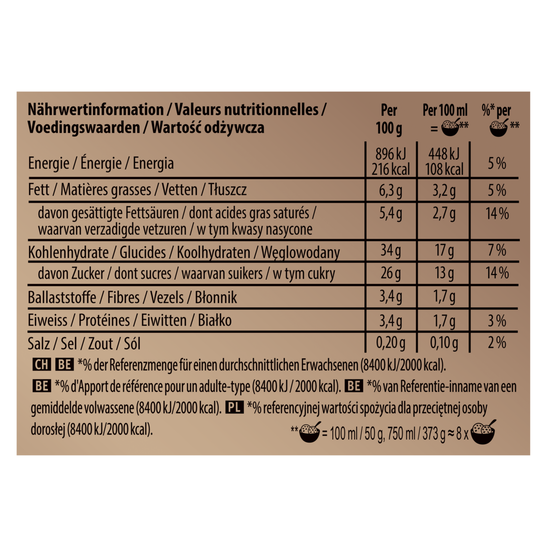 * % der Referenzmenge für einen durchschnittlichen Erwachsenen (8400 kJ / 2000 kcal)