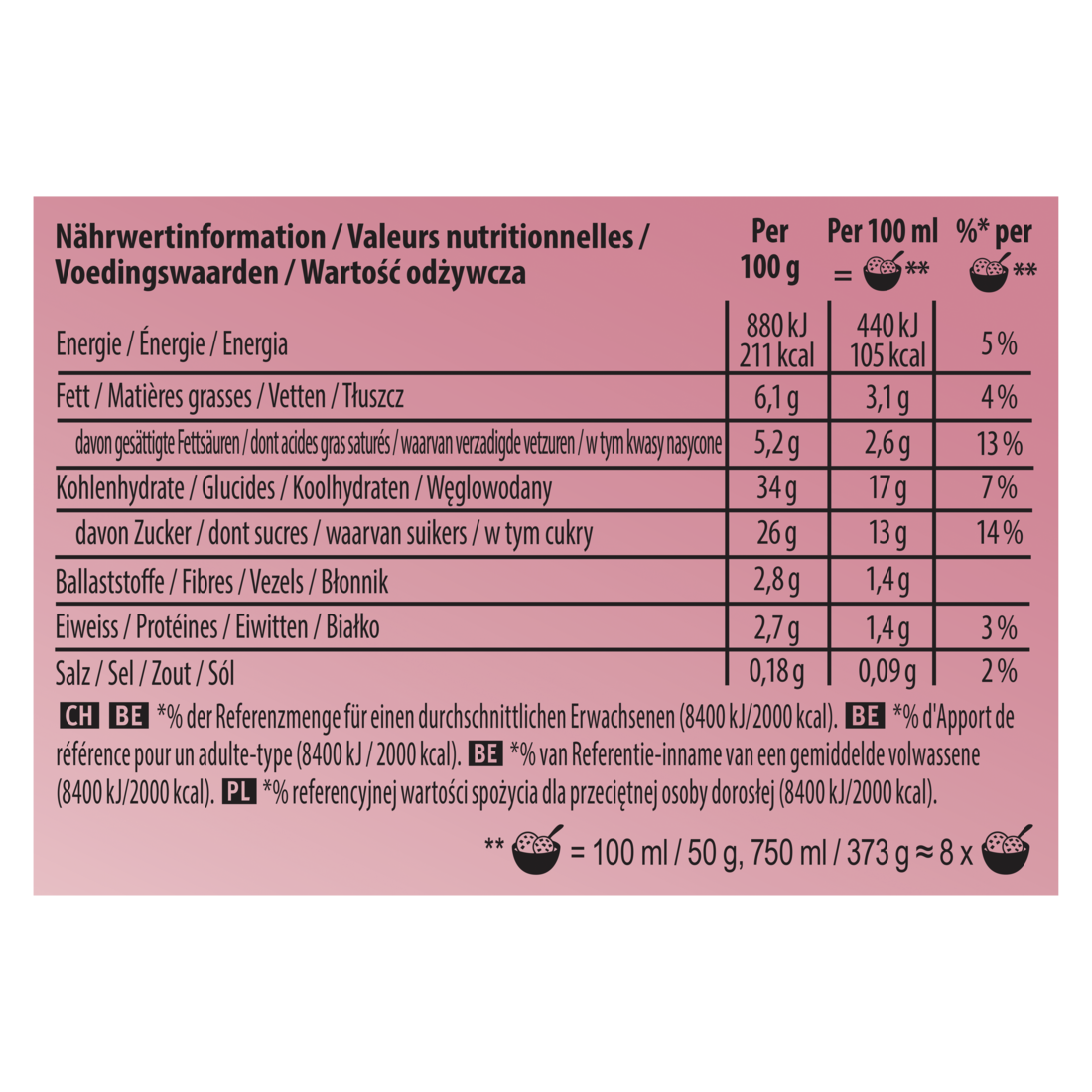 | Bezeichnung | 100 g enthalten | 100 ml enthalten | pro Portion** |