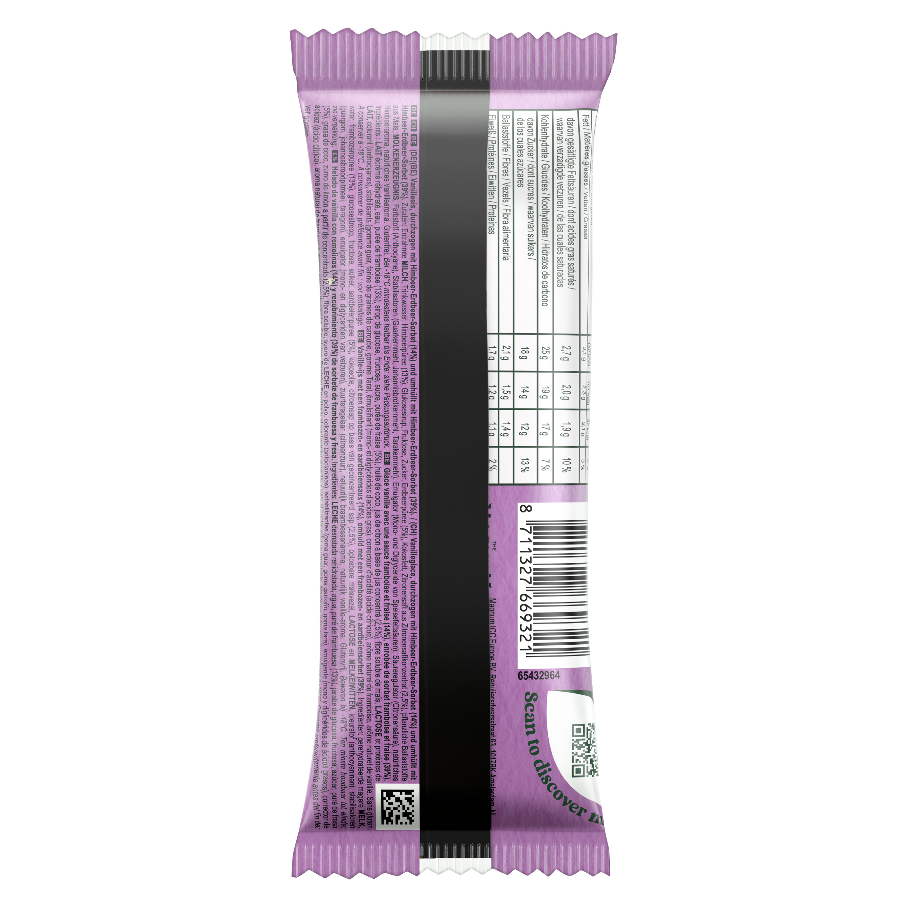 Zutaten: Entrahmte MILCH, Trinkwasser, Himbeerpüree (13%), Glukosesirup, Fruktose, Zucker, Erdbeerpüree (5%), Kokosfett, Zitronensaft aus Zitronensaftkonzentrat (2,5%), pflanzliche Ballaststoffe aus Mais, MOLKENERZEUGNIS, Farbstoff (Anthocyane), Stabilisatoren (Guarkernmehl, Johannisbrotkernmehl, Tarakernmehl), Emulgator (Mono- und Diglyceride von Speisefettsäuren), Säureregulator (Citronensäure), natürliches Himbeeraroma, natürliches Vanillearoma.