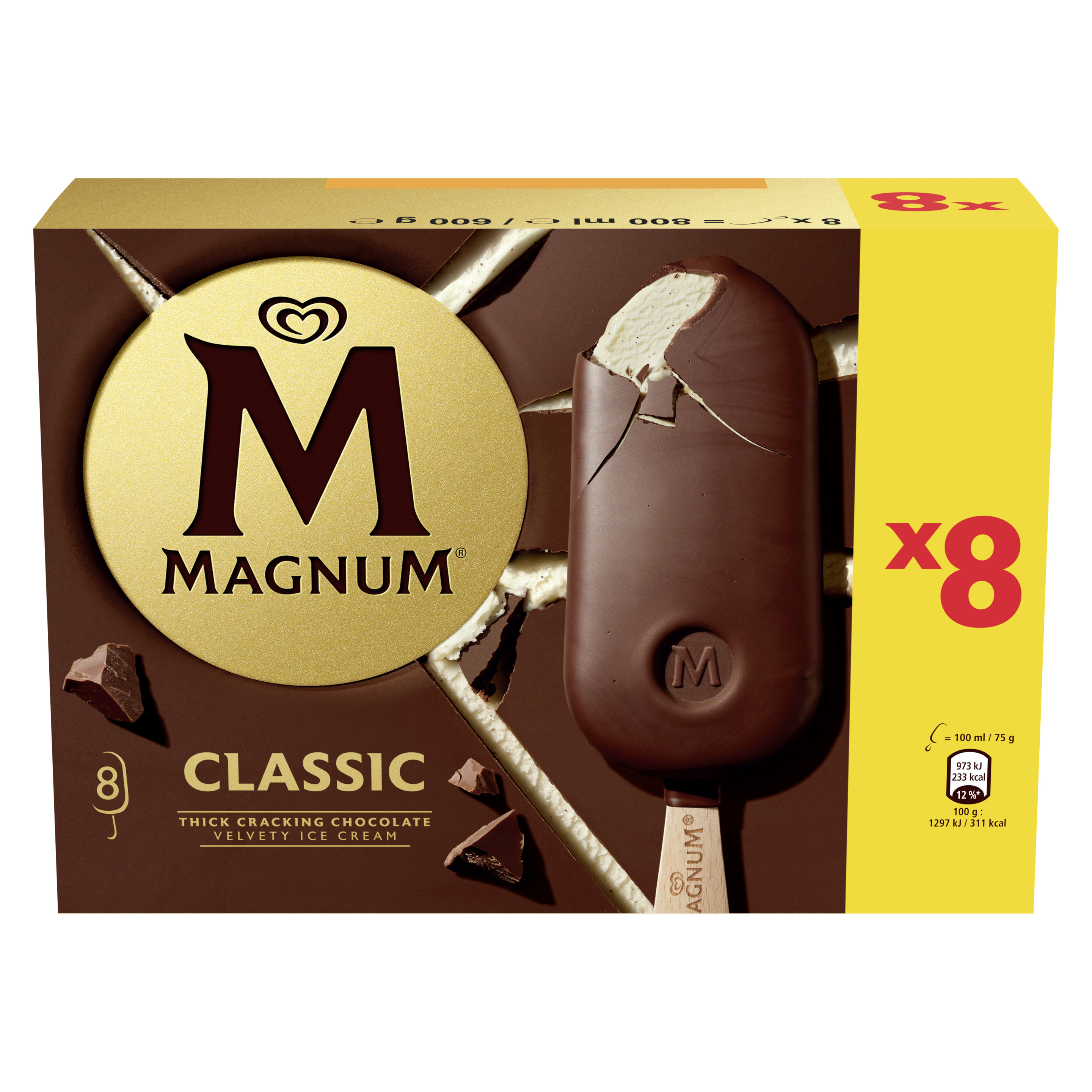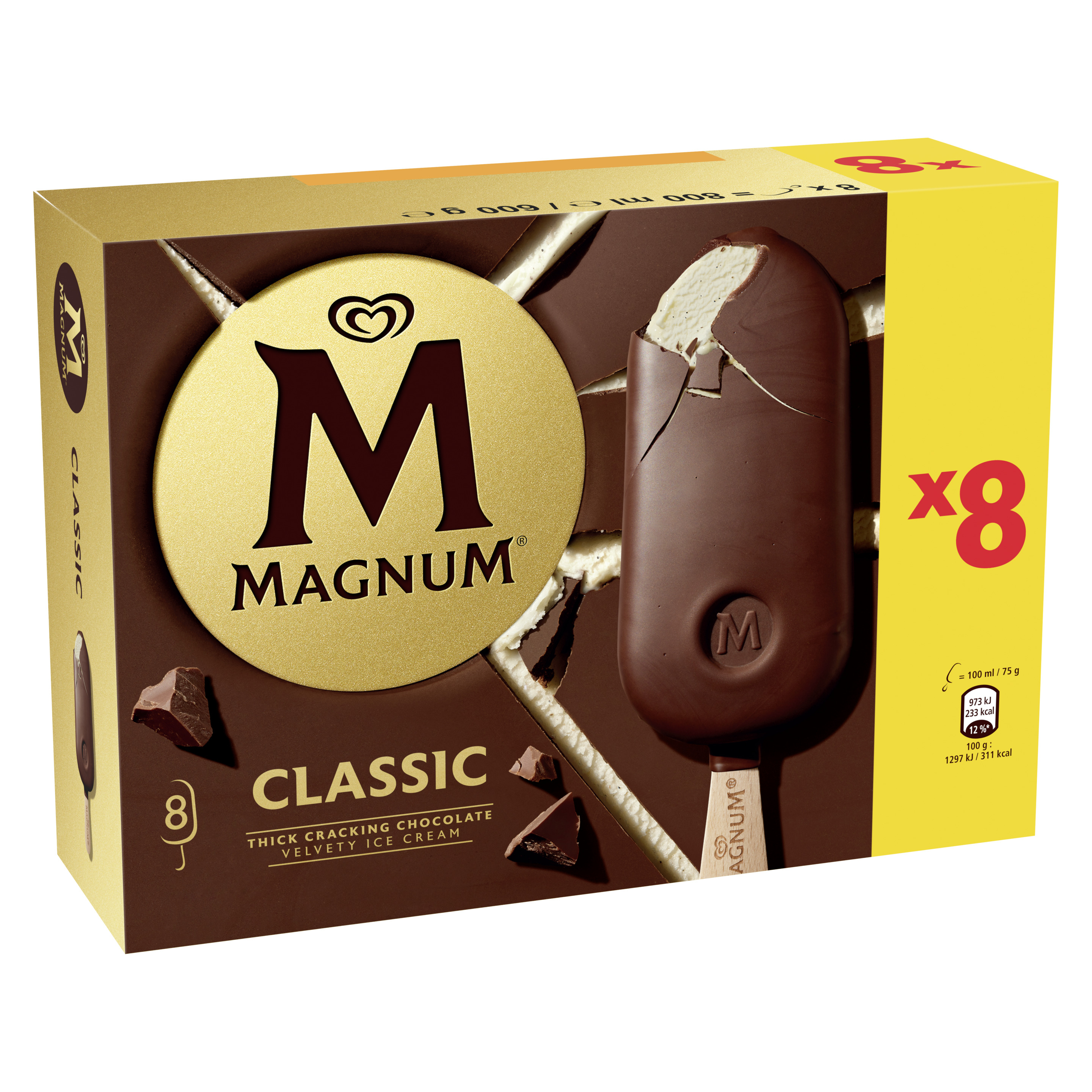 Der Klassiker im Magnum-Sortiment. Cremiges Vanilleglace, umhüllt von knackiger Magnum Schokolade.