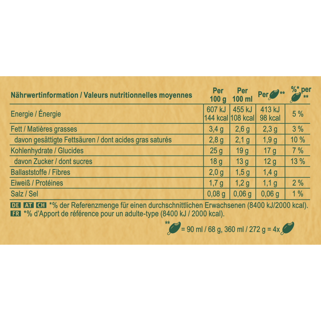 | Bezeichnung | 100 g enthalten | 100 ml enthalten | pro Portion |